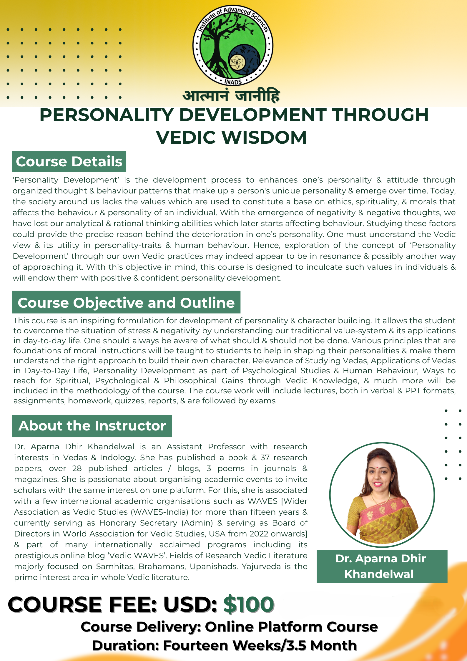 *Prerequisite: Graduation in any area of knowledge. Sanskrit/Vedic Texts, Philosophy, or Psychology will be a preferred base to understand the course.*